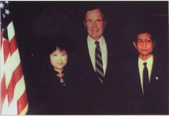 没多久,严大师还被请去美国讲课,跟美国总统克林顿、老布什合影。