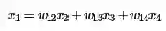 LLE首先假设数据在较小的局部是线性的,即某一个数据可以由它邻域中的几个样本来线性表示。比如我们有一个样本x1,我们在它的原始高维邻域里用K-近邻思想找到和它最近的三个样本x2,x3,x4. 然后我们假设x1可以由x2,x3,x4线性表示,即: