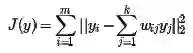 在寻找到某个样本的xi的k个最近邻之后需要找到找到xi和这k个最近邻之间的线性关系,也就是要找到线性关系的权重系数。找线性关系,这显然是一个回归问题。假设我们有m个n维样本{x1,x2,...,xm},可以用均方差作为回归问题的损失函数:即: