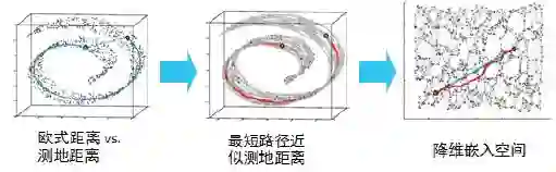 在局部保持布结构的特征,不同的保持方法对应不同的流形算法。比如等距映射(ISOMAP)算法在降维后希望保持样本之间的测地距离而不是欧式距离,因为测地距离更能反映样本之间在流形中的真实距离。