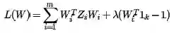 现在将矩阵化的两个式子用拉格朗日子乘法合为一个优化目标: