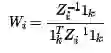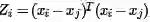 2) for i 1 to m, 求出局部协方差矩阵Zi=(xi−xj)T(xi−xj),并求出对应的权重系数向量: