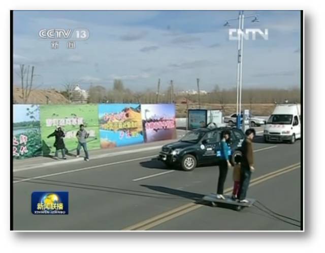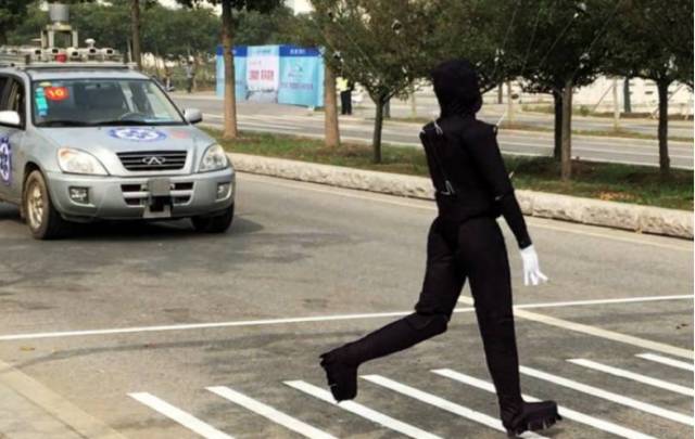 在这14支队伍中,有一支队伍来自北京理工大学。车子打火后,自动换挡,比赛就这样开始了。速度不低于50千米/时,走了10分钟,首先遇到了“避让行人”测试。只见一辆小滑板车上载着一家三口模拟假人,从路边缓缓拉到了路中央,北理车队的无人车不紧不慢,在距离假人不到10米处刹住车。