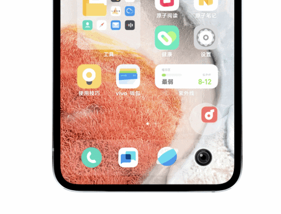 遇到桌面页面空间不足时,OriginOS Ocean 也提供了暂存区概念,待页面有了多余空间之后,即可把暂存区的图标拖回桌面。文件夹体系也迎来了变化,用户也可以根据需要调节文件夹的尺寸,甚至可以自定义文件夹的色彩和原子组件。