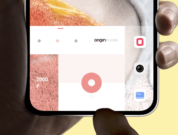 率先登场的“全新原⼦随身听”,被称为⾳乐⽽⽣,为⾳乐定制。因为用户⼏乎可以在任何界⾯上快速启动它,因为用户可以在交互池中设置屏幕右侧呼出原⼦随身听,在锁屏拖拽按钮滑动⾄指纹上半部分直接播放⾳乐,滑动⾄下半部分则直接打开播放列表。