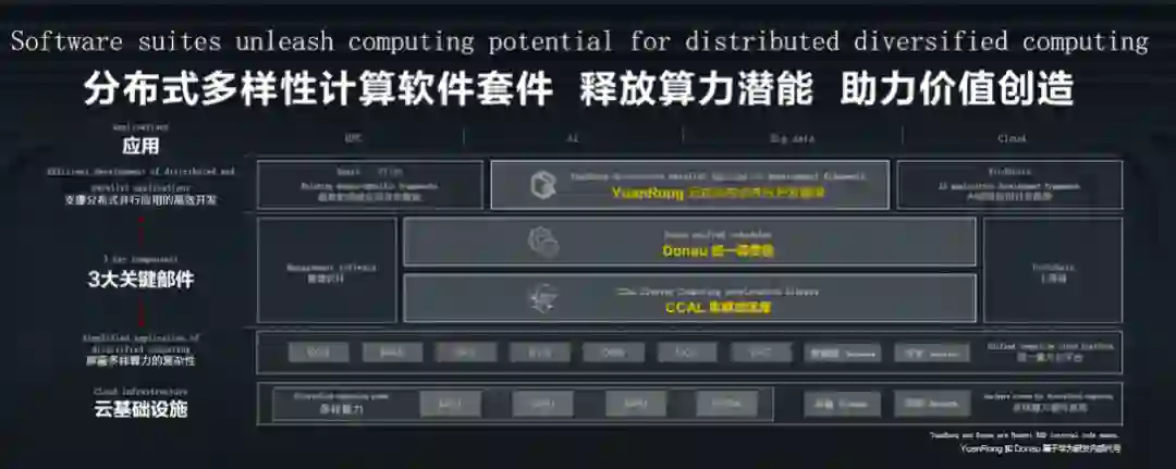 比如,多样性算力如何和应用最佳匹配,分布式应用的并行化性能如何提升,应用性能如何随着系统规模增长而逼近线性增长,融合应用开发带来的学习成本高以及跨系统协同等问题。