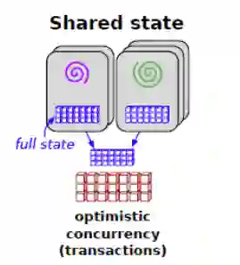 有了这些「共享数据」,就能实时了解整个集群的资源使用情况。每个子调度器都有了集群的状态副本,可以看到集群的全部负载信息,当子调度器的资源状态改变时,可以修改「单元状态」信息并同步给其他子调度器。