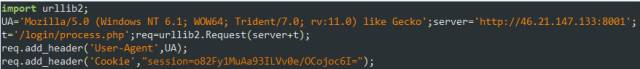 该脚本与服务器交流的方式远比一般僵尸网络要复杂的多。发送请求给 C&C服务器后,会增加特定用户代理和Cookie headers。这样的话,任何试图通过个人浏览器或工具进入C&C 服务器的人都无法获得与恶意软件相同的响应。