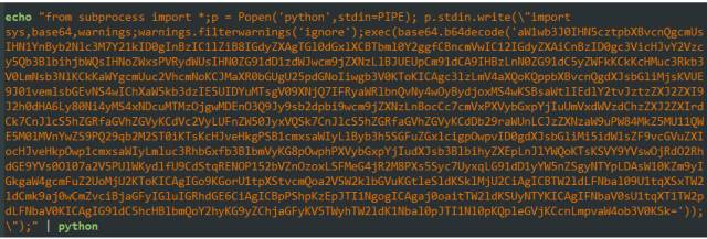 接下来,它会将一个内置的64进制模糊python代码 注入一个新的Python进程。