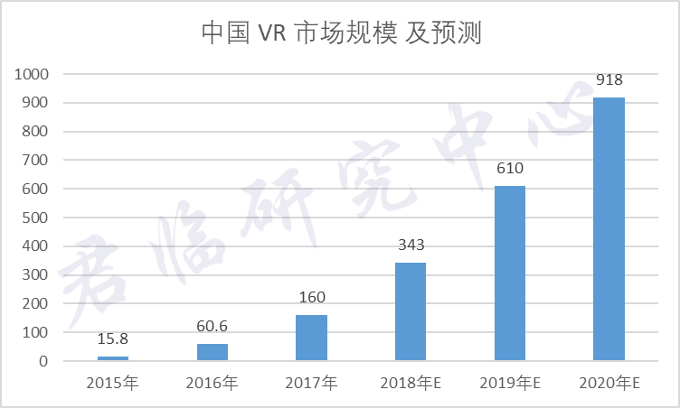 另一家机构Greenlight数据,2018年全球VR市场规模超过600亿美元,预计2020年达到1600亿美元,期间年复合增长率63.3%。