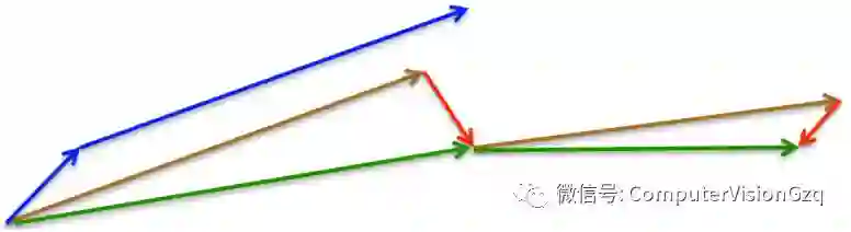 详细介绍可以参见Ilya Sutskever的PhD论文[9]。假设动量因子参数γ=0.9,首先计算当前梯度项,如上图小蓝色向量,然后加上动量项,这样便得到了大的跳跃,如上图大蓝色的向量。这便是只包含动量项的更新。而NAG首先来一个大的跳跃(动量项),然后加上一个小的使用了动量计算的当前梯度(上图红色向量)进行修正得到上图绿色的向量。这样可以阻止过快更新来提高响应性,如在RNNs中[8]。