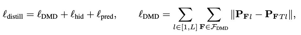 因此,蒸馏损失可以表示为对隐藏层、预测结果和上述激活相似性矩阵的损失之和: