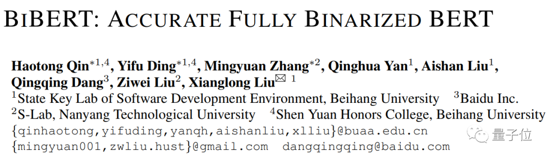 在本文中,来自北航、NTU、百度的研究人员提出了BiBERT,将权重、激活和嵌入均量化到1比特(而不仅仅是将权重量化到1比特,而激活维持在4比特或更高)。