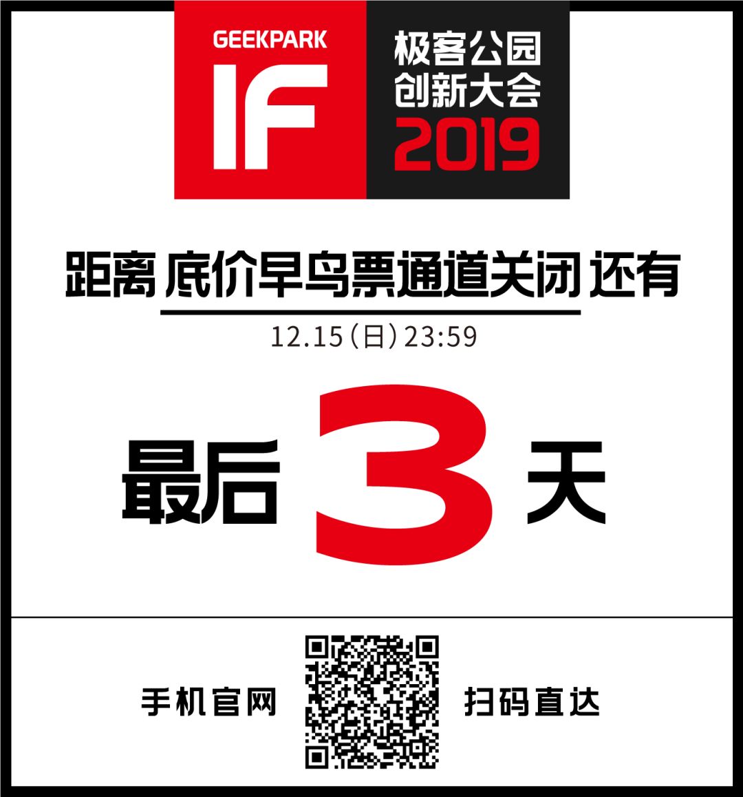 距离 IF19 底价早鸟票通道关闭还有最后 3 天,立即扫描下方二维码或点击「阅读原文」参与限时抢购 ↓