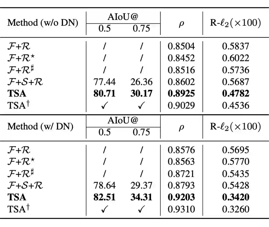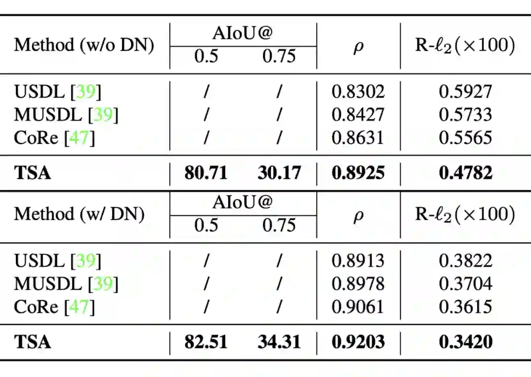 我们的方法(TSA)与其他 AQA 方法的对比结果(见表(7))。