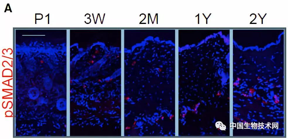 在小鼠模型中,研究人员使用化学阻断剂抑制TGF-β通路,让皮肤恢复年轻的机能,使皮肤成纤维细胞能够分化为脂肪细胞。利用基因技术关闭小鼠体内该途径也有相同的效果。