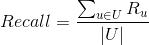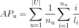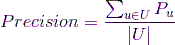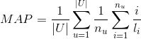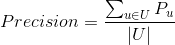 其中,代表的是为用户u推荐的平均准确率,U是所有提供推荐服务的用户的集合;