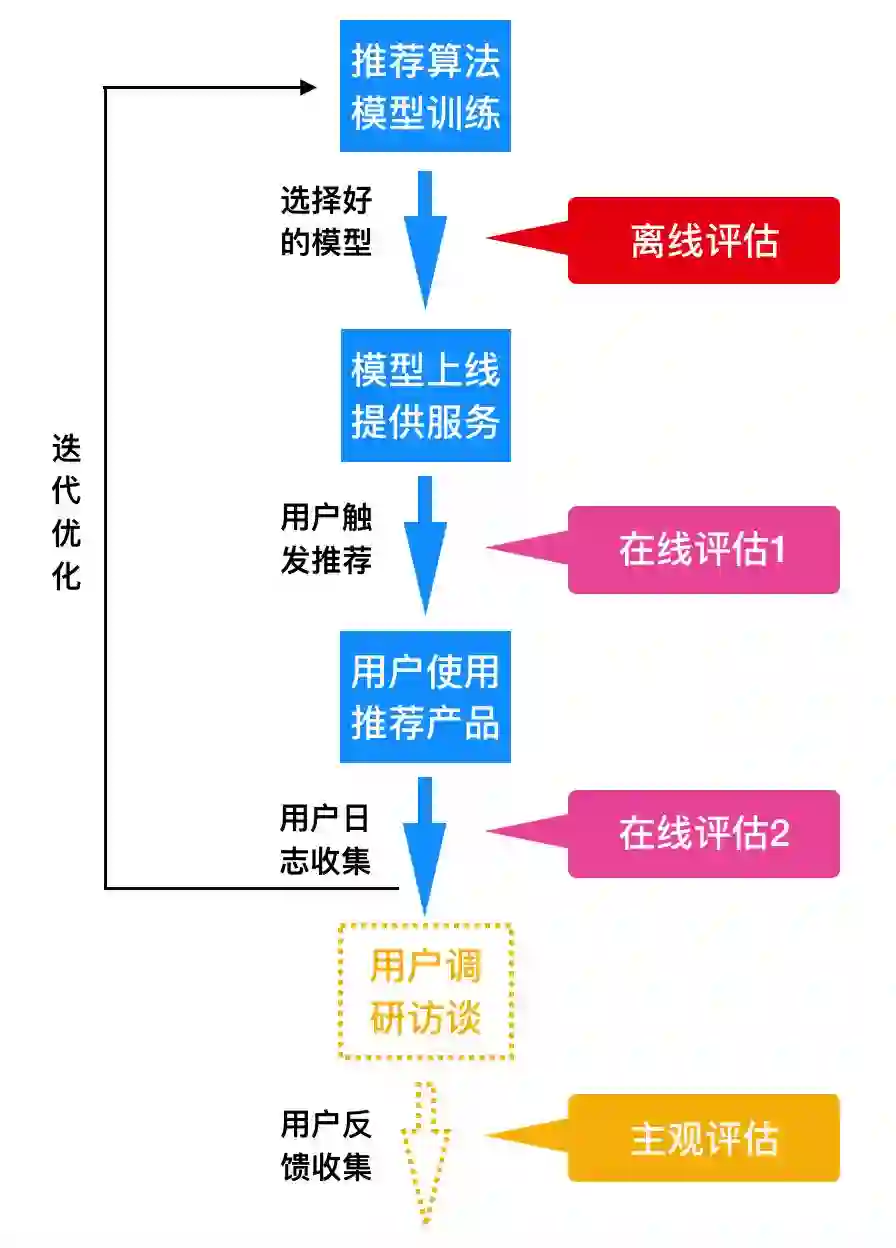 图2:根据推荐业务流,将推荐评估分为3个阶段