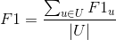 上面只计算出了推荐算法对一个用户u的准确率、召回率、F1值。整个推荐算法的效果可以采用所有用户的加权平均得到,具体计算公式如下: