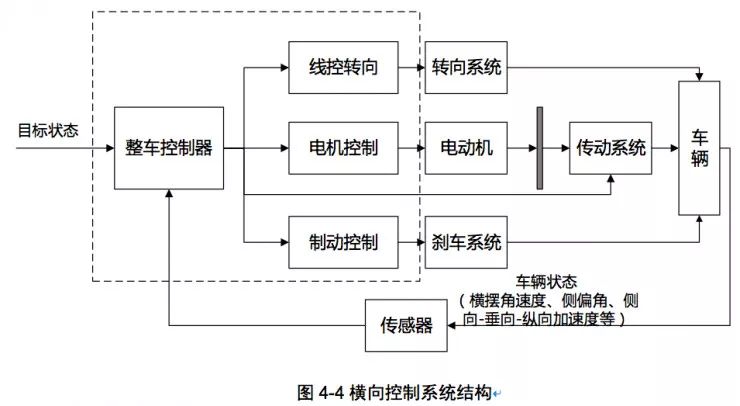 车辆横向控制指垂直于运动方向上的控制,对于汽车也就是转向控制。目标是控制汽车自动保持期望的行车路线,并在不同的车速、载荷、风阻、路况下有很好的乘坐舒适性和稳定性。车辆横向控制主要有两种基本设计方法,一种是基于驾驶员模拟的方法;另一种是给予汽车横向运动力学模型的控制方法。