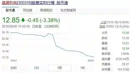 受此影响,近日,光伏股出现暴跌。6月6日,晶盛机电(300316)在互动平台上表示,光伏新政短期对行业有所影响,长期看有利于行业淘汰落后产能,加速平价上网进程。公司目前经营情况正常,尚未发生订单取消或违约情况。第一财经1℃记者注意到,6日收盘后,晶盛机电下跌3.38%,而自6月1日至今,该股累计下跌了近20%。