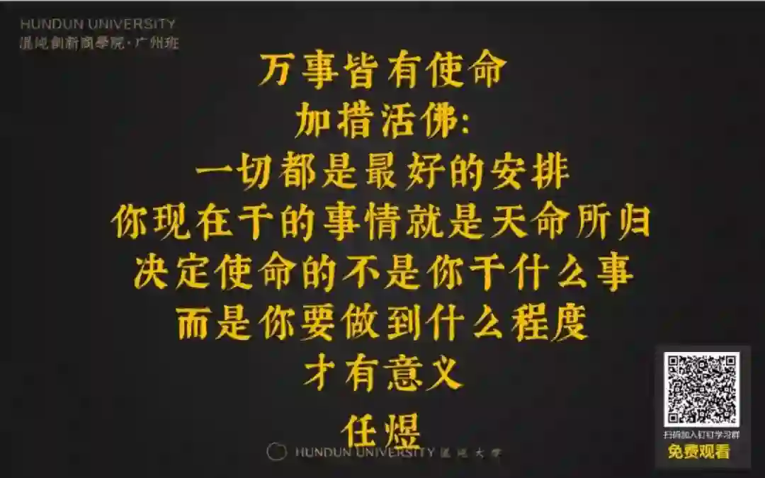 所以我其实特别想跟大家分享一句话,加措活佛说“一切都是最好的安排”,我最后得到一个结论是:一切皆有使命。所以你现在干的事儿就是天命所归,因为决定使命的其实根本不是你干什么事,而是你要把什么事做到什么程度才有意义。这其实是我今天最想跟大家分享。