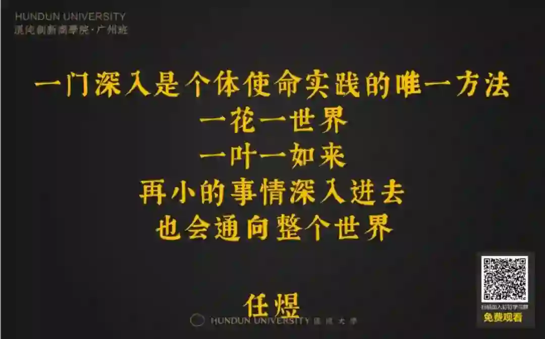 所以,一门深入是个体使命实践的唯一方法。为什么?因为中国其实有很多很有趣的隐喻,其实像佛教里面经常讲,一花一世界,一叶一菩提。再小的事情深入进去,也会通向整个世界。