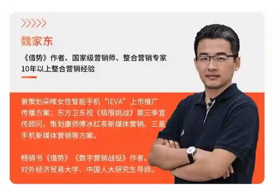 《借势》作者、《极限挑战》第3季宣传顾问、10年以上整合营销经验@魏家东老师将会为你详解: