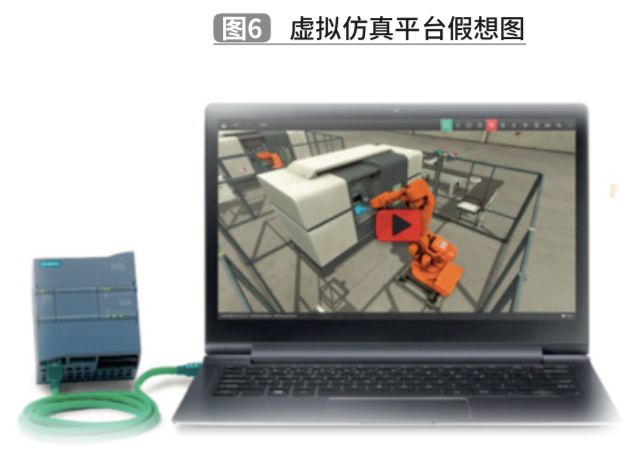 通过以上借鉴点参考,按照“虚拟仿真”的思路, 平台研发设计要以现场设备以及电控系统架构为基础,将电控系统硬件平台与三维虚拟环境有效结合,实现可视化的虚拟仿真培训以及程序在线调试检测平台。虚拟仿真平台假想图,如图6。