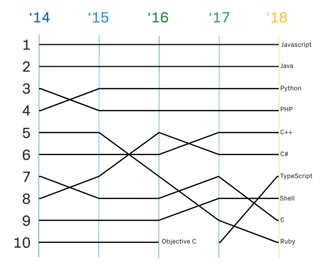 顺带着,连 TypeScript 都登上了 Top 10,它也是在 Top 10 里上升最快的编程语言。