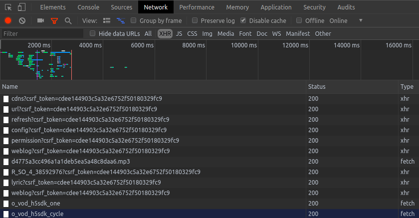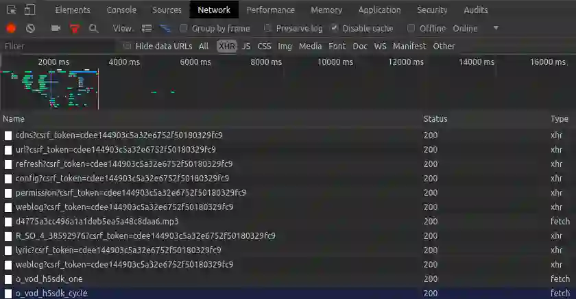 由于网易云音乐的评论是通过Ajax传输,我们打开浏览器的开发者工具(检查元素),选中控制面板中的Network,再点击XHR(捕获ajax数据),然后点击左上角的重新加载,会看到下面图片中的数据请求列表
