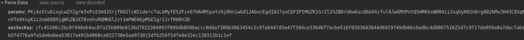 上面我们获取到了两个参数encText和encSecKey,利用这两个参数来构造post表单数据(Form Data),即data的值: