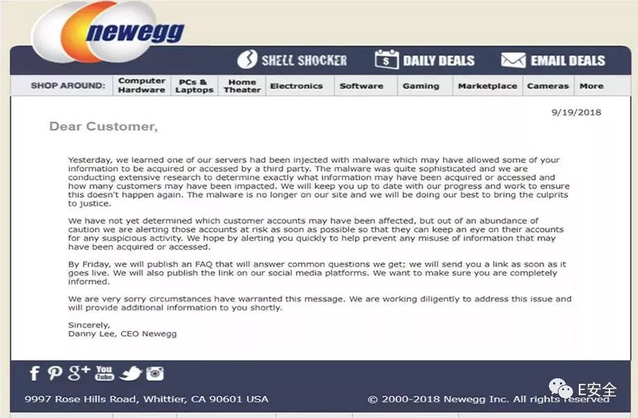 网络安全公司 RiskIQ 和 Volexity 分别发布报告披露,全美第二大 IT/CE 电商平台Newegg(新蛋)遭遇 MageCart 黑客攻击,大量用户的信用卡信息被盗,涉及用户数量可能数千万。