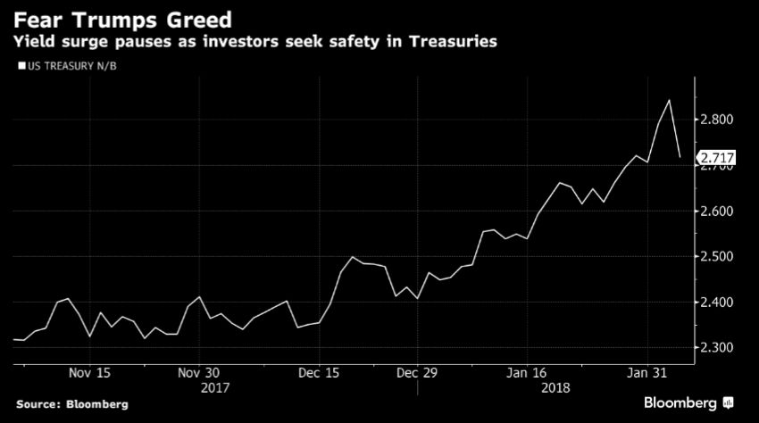 恐惧战胜了贪婪,投资者避险推升美债价格,收益率涨势戛然而止