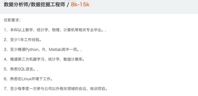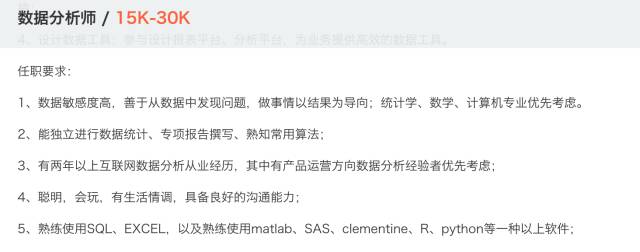 我们从拉钩上找了一些最具有代表性的数据分析师职位信息,来看看薪资不菲的数据分析师需要哪些技能。