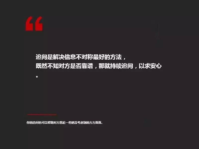 所以总结来说,不管对方靠谱不靠谱,你如果想要把事情的风险降到最低,那就持续追问对方。