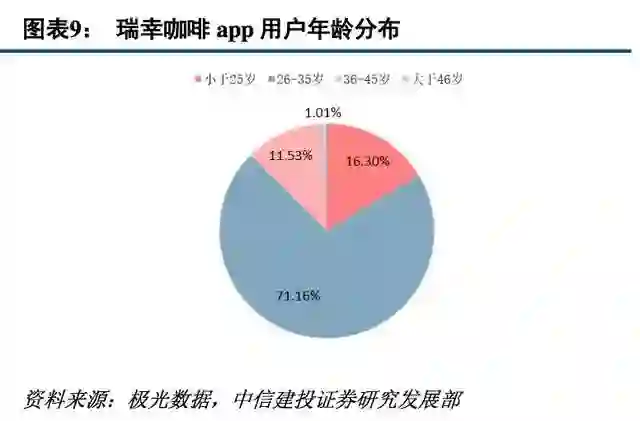 根据极光数据,瑞幸咖啡用户中26-35岁群体占比达71%,这部分人群是近几年消费的中坚力量,而瑞幸咖啡正好符合这部分人群对咖啡的便利性和社交性的需求。