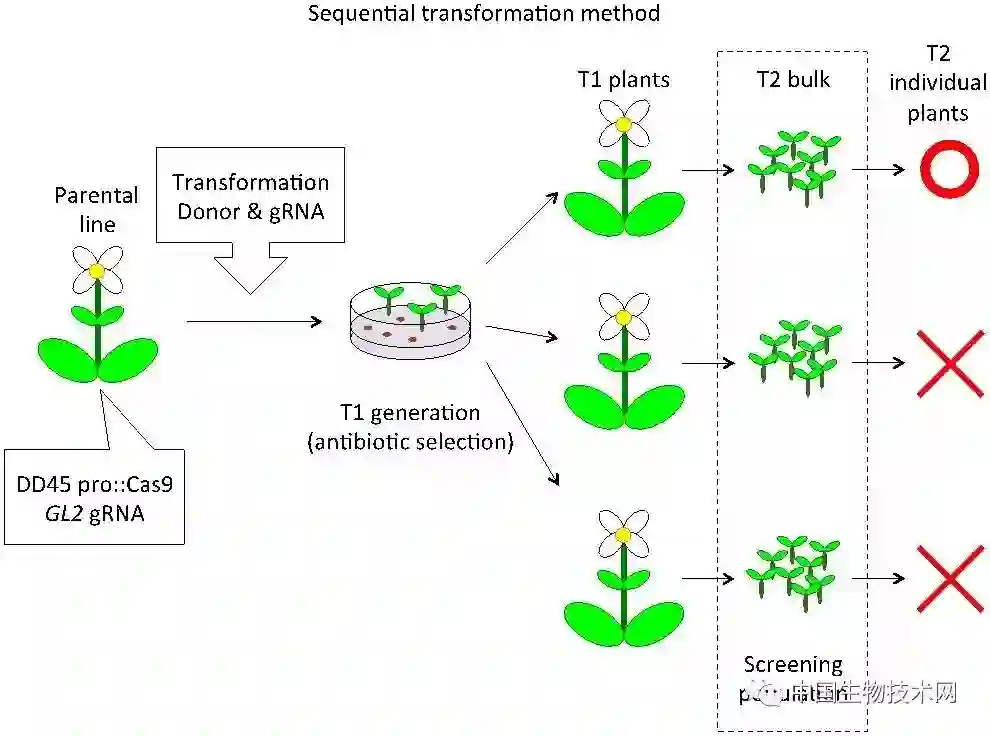 5月17日,国际学术期刊《自然-通讯》(Nature Communications)在线发表了中国科学院上海植物逆境生物学研究中心朱健康研究组题为CRISPR/Cas9-mediated gene targeting in Arabidopsis using sequential transformation 的研究论文。该研究报道了一种在拟南芥中基于二代转化策略与CRISPR/Cas9系统的超长基因片段高效精准敲入/替换技术。它可以在拟南芥基因组精准定向地实现单氨基酸或大片段的插入或替换,且编辑位点无需任何标记辅助筛选,效率高达5%-10%。此研究大大推进了CRISPR系统在植物中的应用,为植物基因定点编辑提供了一种新方法。