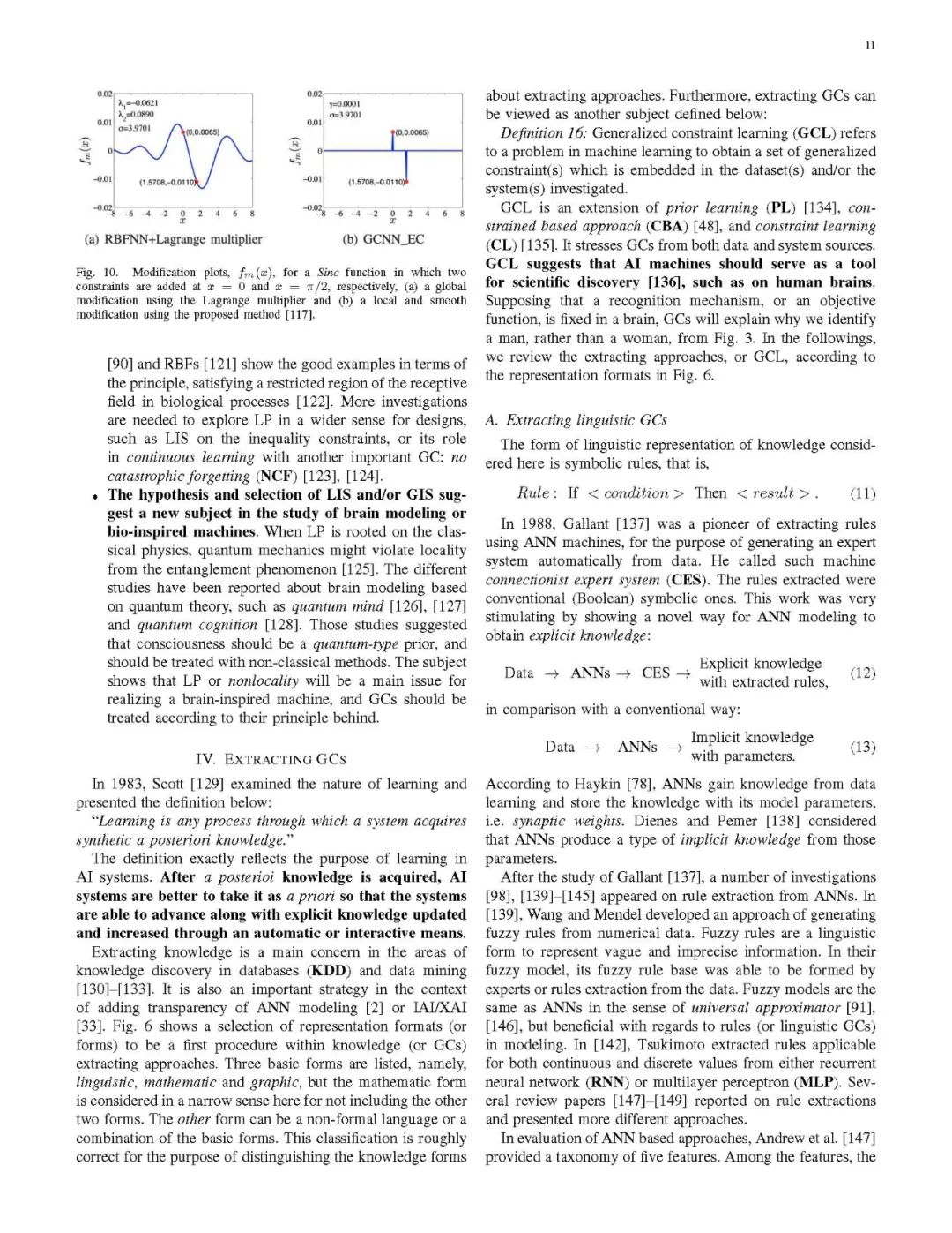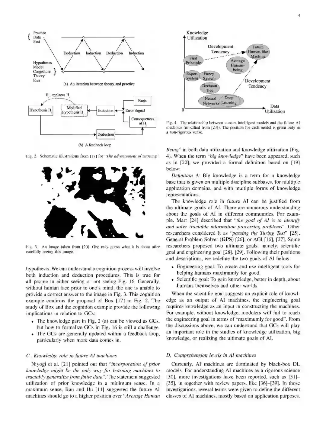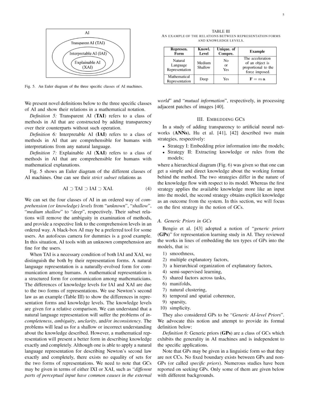 本文正是在原有“透明度或广义约束”学术思想主线的后续发展。其中的主要学术新贡献是将“广义约束”扩展为包容非结构化的先验信息,以及指出由此产生的各种新挑战。对目前同行中提出的Transparent AI (TAI), Interpretable AI (IAI), Explainable ANN (XAI) 予以了重新定义,保证新定义在数学集合层面可以区分。对应同样有“可解释性”的英文,我们给出IAI是自然语言可解释AI,XAI是数学语言可解释AI,分别对应了“浅层”与“深层”知识理解。人工智能终极发展应是XAI。我们团队开展的参数可辨识性给出了XAI研究具体实例。XAI新定义提出还有利于我们从数学层面考虑其边界。如果对人类大脑活动无有计算表达情形存在,所谓机器全面超越人类智能就如水中捞月或制造永动机?