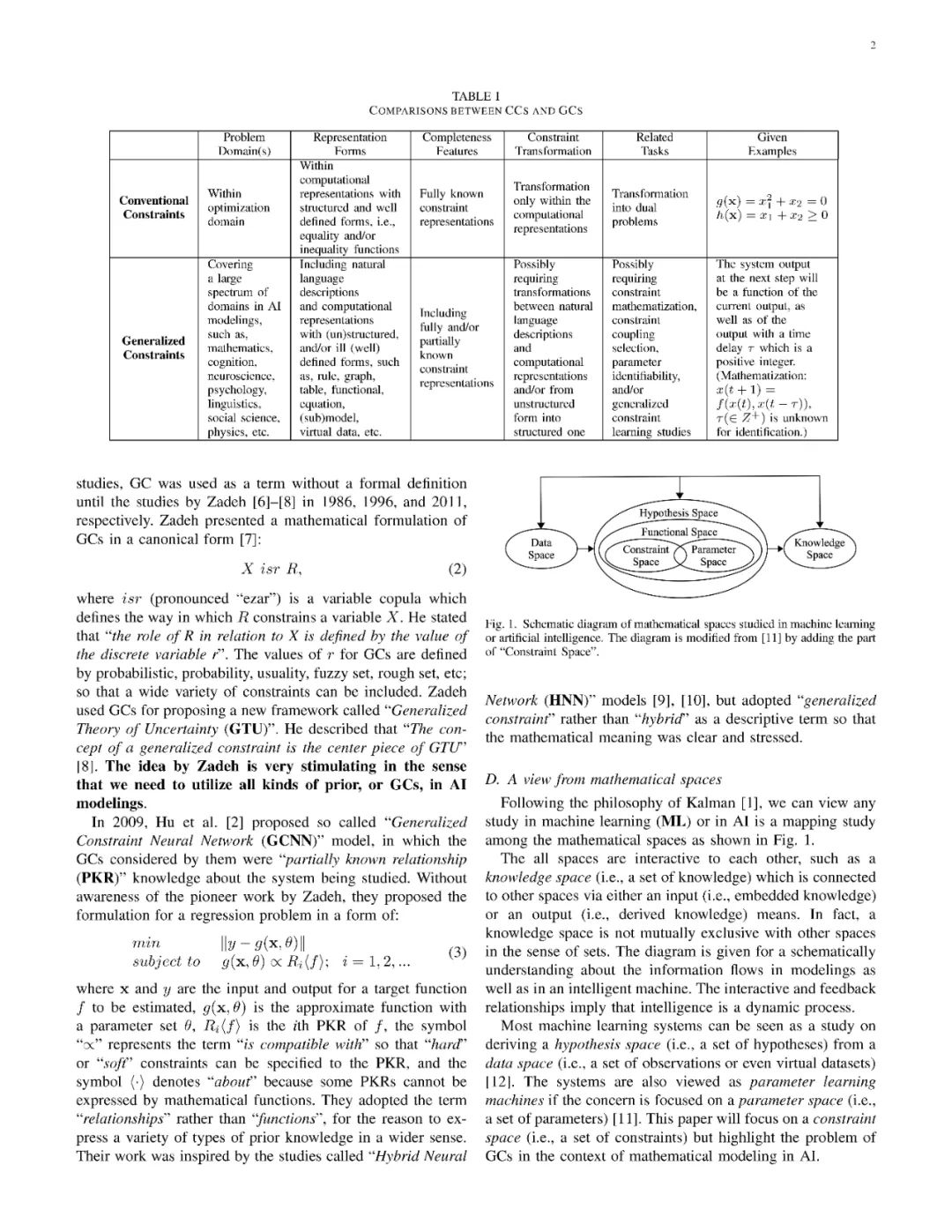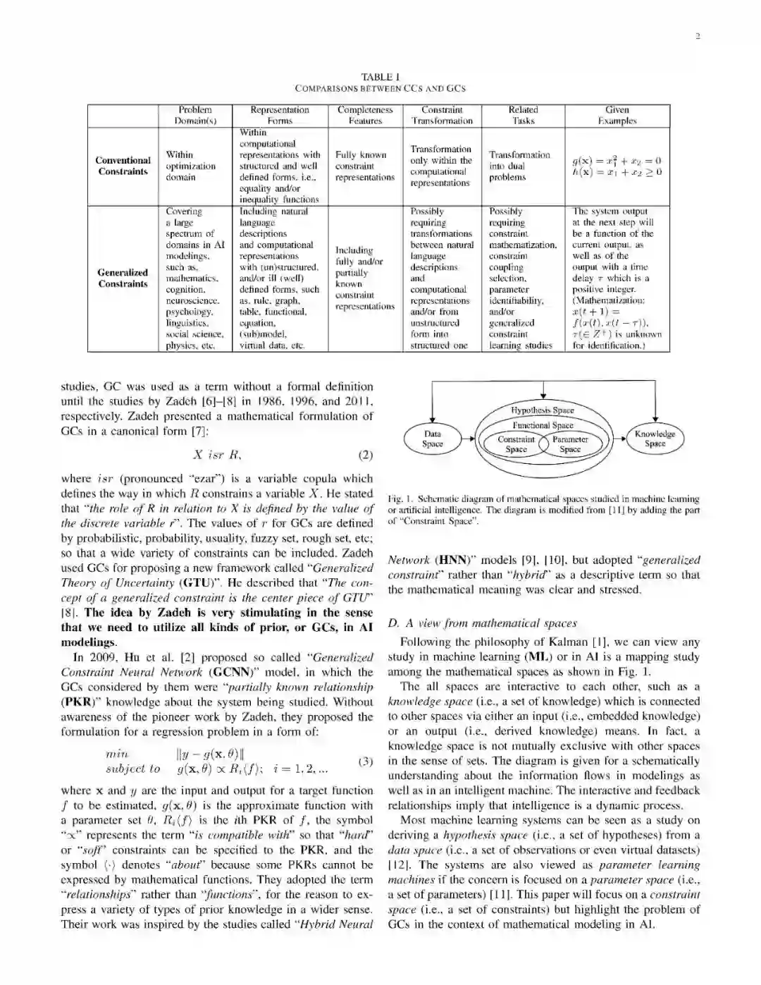 本文简要回顾了“广义约束”提出的历史。尽管该术语在1960年代就已经出现,而具体定义是扎德于1986年、1996年文章中逐步给出。其中他将“广义约束”定义为各种结构化先验知识,并于2011年逐步扩展为“不确定性广义理论(GTU)”。他多篇“广义约束”与“不确定性广义理论”文章更是一种学术思想提出,而没有给出具体应用实例。该思想提出后并非得到学界同行的大体认同,这可以从相关文章引用率上看出。扎德是以其“模糊集理论之父”而著称,实际上他在自动控制理论中也有诸多建树,如他1956年针对黑箱系统建模问题以及1962年针对“电阻–电感–电容”网络提出系统辨识问题,都是开创性的。1965年扎德开创的“模糊集理论”应该源于“将自然语言转化为数学语言”这样的问题而提出。然而,该理论提出后受到了卡尔曼的质疑:“'Fuzzification' is a kind of scientific permissiveness; it tends to result in socially appealing slogans unaccompanied by the discipline of hard scientific work and patient observation.(`模糊化'是一种科学的松懈,它倾向于产生具有社会吸引力的口号而非伴随严谨科学工作与耐心观察。)[3]” 。模糊集理论应该是在它出现十年后才得到学术界同行的认可,重要原因有日本学者应用该理论取得了显著的应用成果。学习这个历史对我们开展创新工作是有意义的。建议读者阅读王立新教授的相关文章[4]。喜欢阅读他对前人(包括其导师)工作有自己独到见解,且一语中的(“实际上模糊理论具体所做的事情却恰恰相反,是`解模糊'”)。学习前人不只是知识获取,应勇于超越前人而创新。创新始于独到见解,其中还要有“虽千万人吾往矣”的劲头。