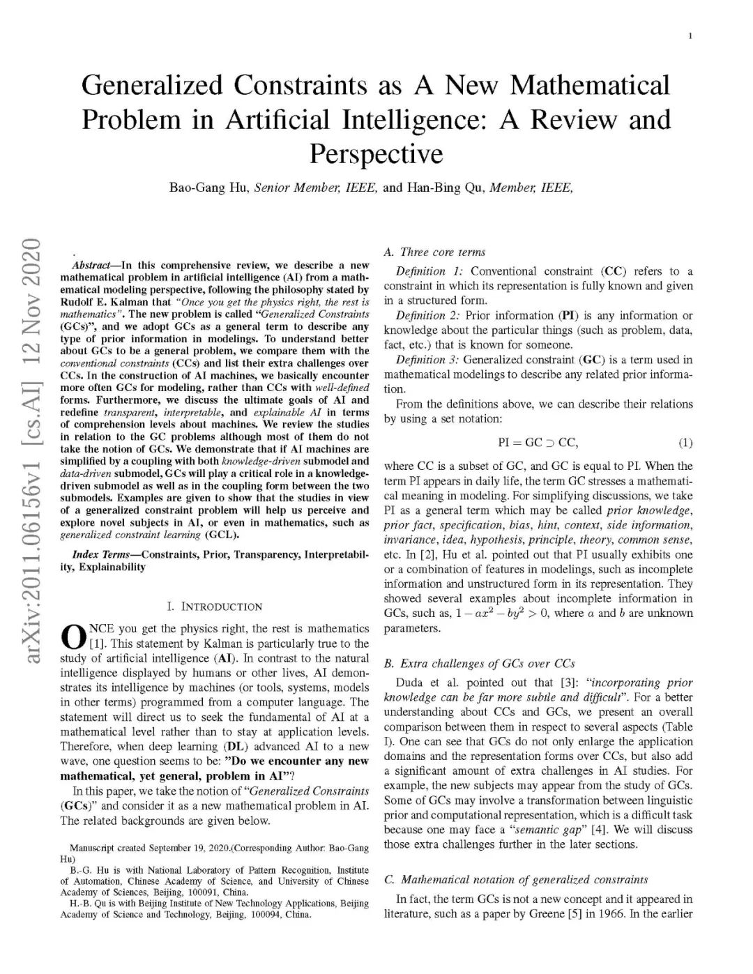 2. 胡包钢,《人工智能新数学问题: 广义约束》, 2020,“专知”