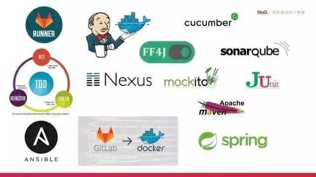 其中包括各种各样的工具,环境配置管理,代码版本控制,各种测试工具和技术,代码build工具,持续集成工具等等。