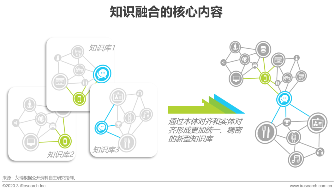 知识融合是指,从概念层和数据层两方面,通过知识库的对齐、关联、合并等方式,将多个知识图谱或信息源中的本体与实体进行链接,形成一个更加统一、稠密的新型知识图谱,是实现知识共享的重要方法。概念层的知识融合主要表现为本体对齐,是指确定概念、关系、属性等本体之间映射关系的过程,一般通过机器学习算法对本体间的相似度进行计算来实现,根据自然语言类型,可分为单语言对齐和跨语言对齐,其中跨语言对齐是实现知识国际交流的重要方式。数据层的知识融合主要表现为共指消解和实体对齐,前者意在将同一信息源中同一实体的不同标签统一,实现消歧的目的;后者是将不同信息源中同一实体进行统一,使信息源之间产生联结。知识融合的使用能够大量应用人类已有知识储备,节省成本,是快速搭建知识图谱的必要手段,也是现代知识图谱应用中重要的研究领域。