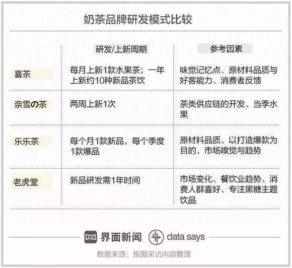 目前,喜茶和奈雪の茶都保持着每个月一款产品的上新速度 。而强调自身创新力的乐乐茶更是定下了“1月1新品,1季1爆品”目标。