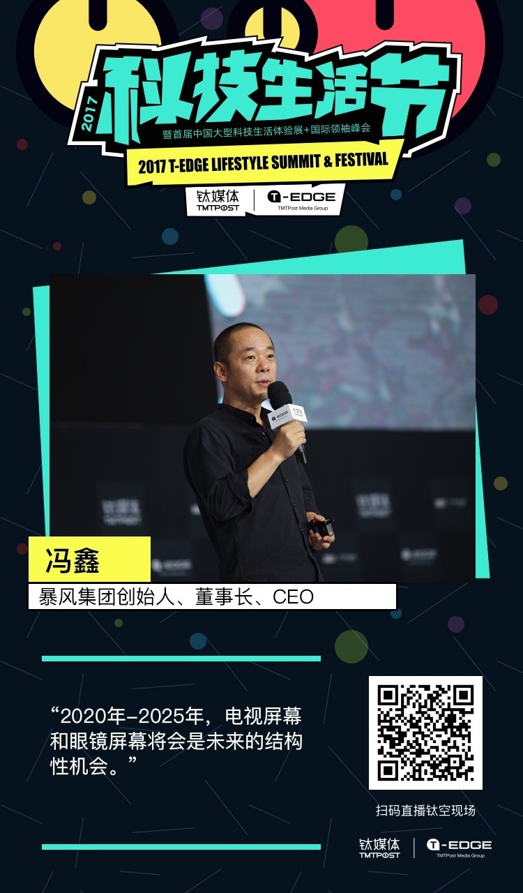 暴风集团创始人、董事长、CEO冯鑫在钛媒体 2017 T-EDGE 科技生活节上