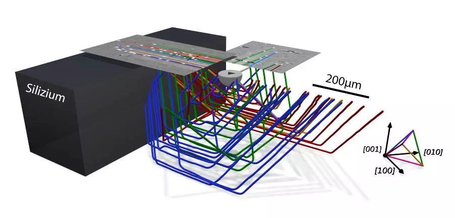 通过数学模型的计算,研究成果将有利于更好理解深层的物理原理。团队的另一成员 Elias Hamann 博士解释道,目前使用的模型主要基于在很小的晶体样本中利用电子显微技术测量到的数据。他们的方法也可以应用于研究大型平面晶体,例如商用晶圆。这是判断初始损伤与最终形成的广泛晶体形变之间的细微关系,这些晶体形变引发的主要问题远远超过起初的缺陷。