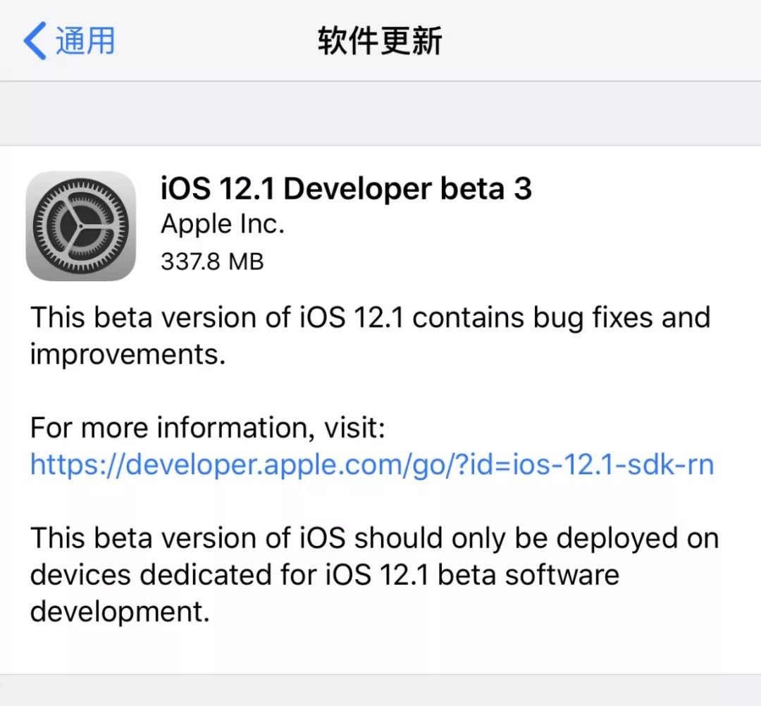 修复BUG改善性能,具体iOS 12.1开发者beta3更新了什么内容有待实测。