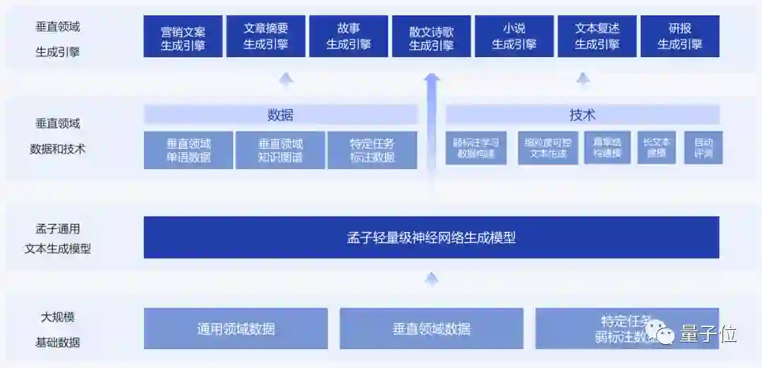 该技术先基于轻量化模型「孟子」,利用大规模通用数据构建通用文本生成模型。