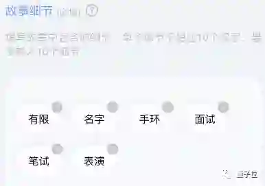 然后开始第一节,我们希望坤坤去面试,关键词再加上「笔试」和「表演」,最后让系统随机生成一些关键词。