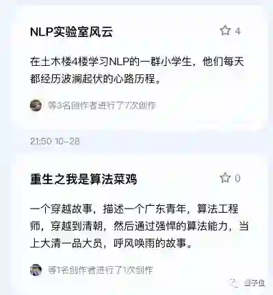翻开创作库,「重生之我是算法菜鸡」、「重生之高中生获得诺奖」、「NLP实验室风云」……